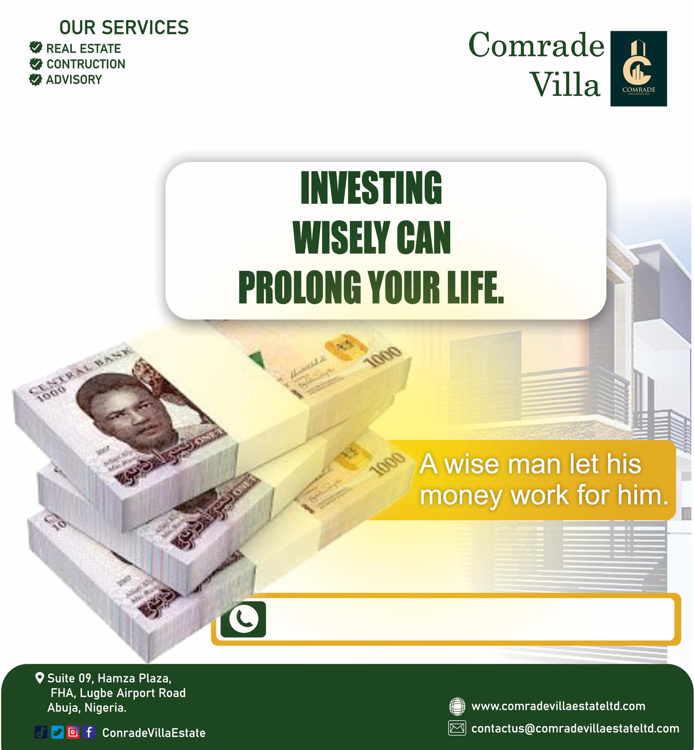 Our Agents are always available to see you through on how to maximize your ROI on your portfolio with us at Comrade Villa.