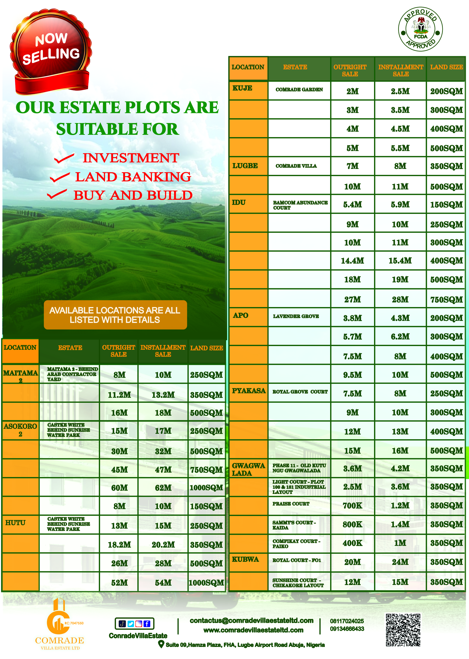 Our Agents are always available to see you through on how to maximize your ROI on your portfolio with us at Comrade Villa.